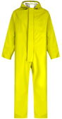 Re-usable high tear and abrasion resistant coverall made from a material blend of PVC/PU offering long-lasting chemical protection and resistance to animal fat and food oils..