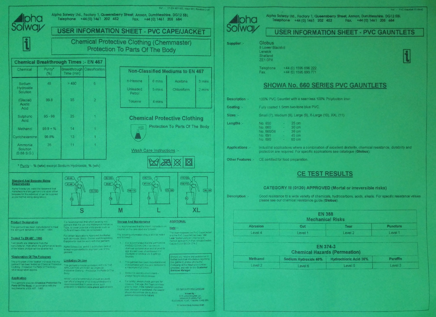 Alpha Solway Chemmaster SP7736\1 Green PVC Cape\Jacket With PVC Gauntlets Size 9