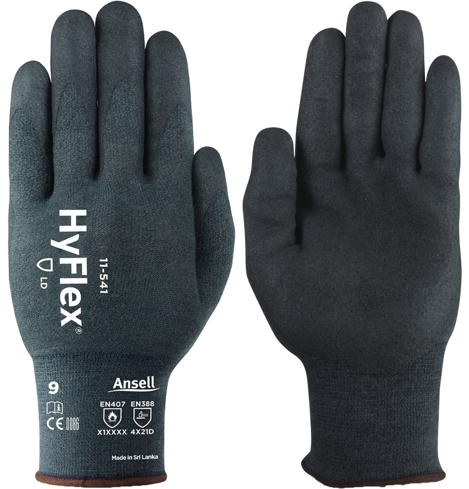 Ansell 11-541 HyFlex Safety Gloves Cut 4 Protection Nitrile Palm Coating