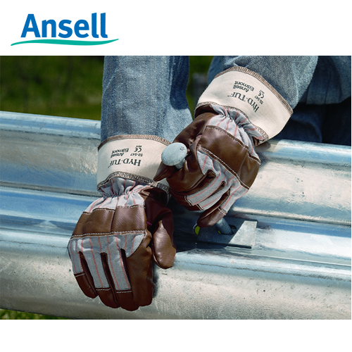 Ansell Hyd Tuf nitrile rigger style gloves feature NBR-coated jersey cotton material and knitted wrist and safety cuff styles.