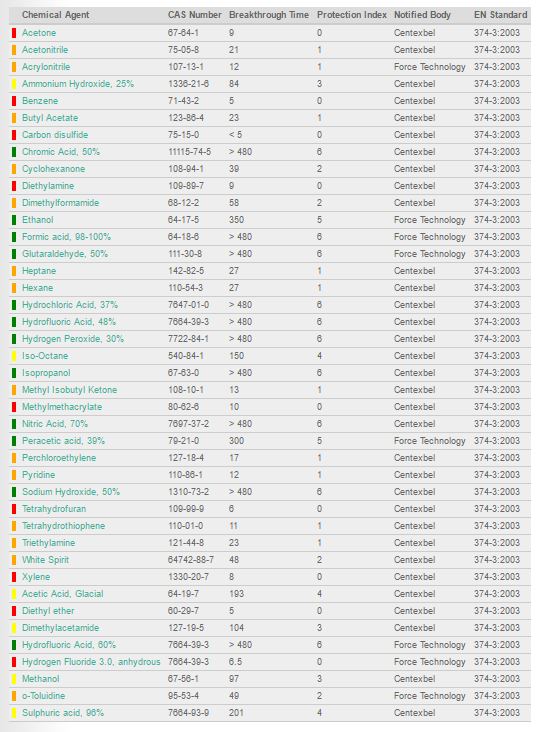 Ansell Neotop 29-500 protects against a wide range of acids, alcohols, caustics and many solvents.