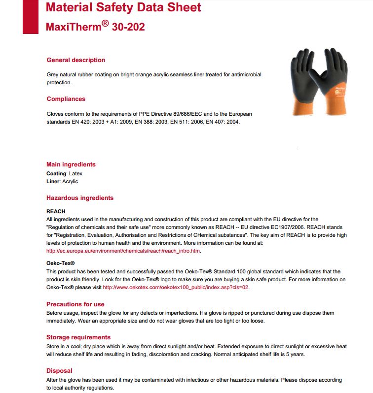 MaxiTherm glove is also able to withstand contact heat up to 250C.