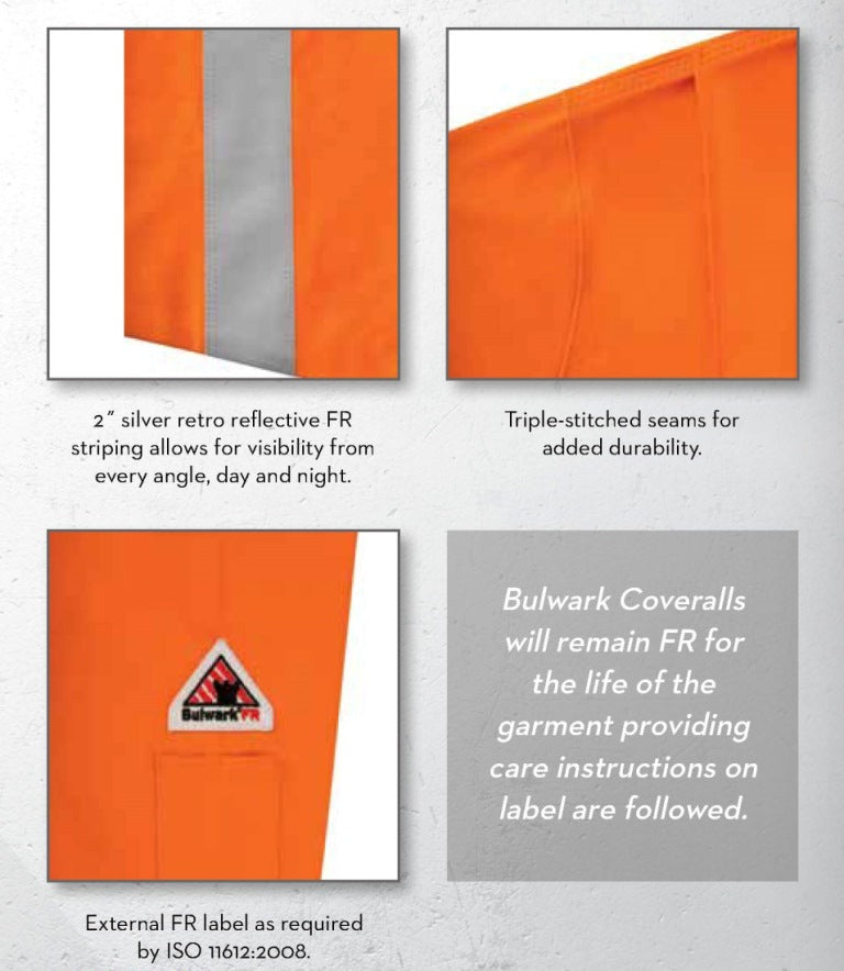 Silver retro-reflective FR striping allows for visibility from every angle at night. Double-stitched for increased durability