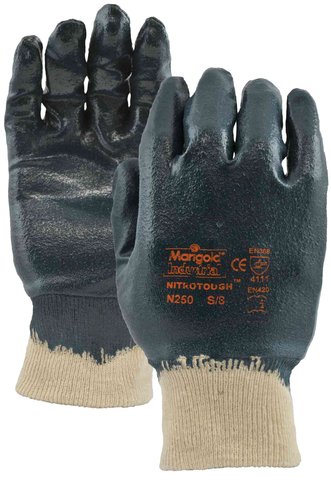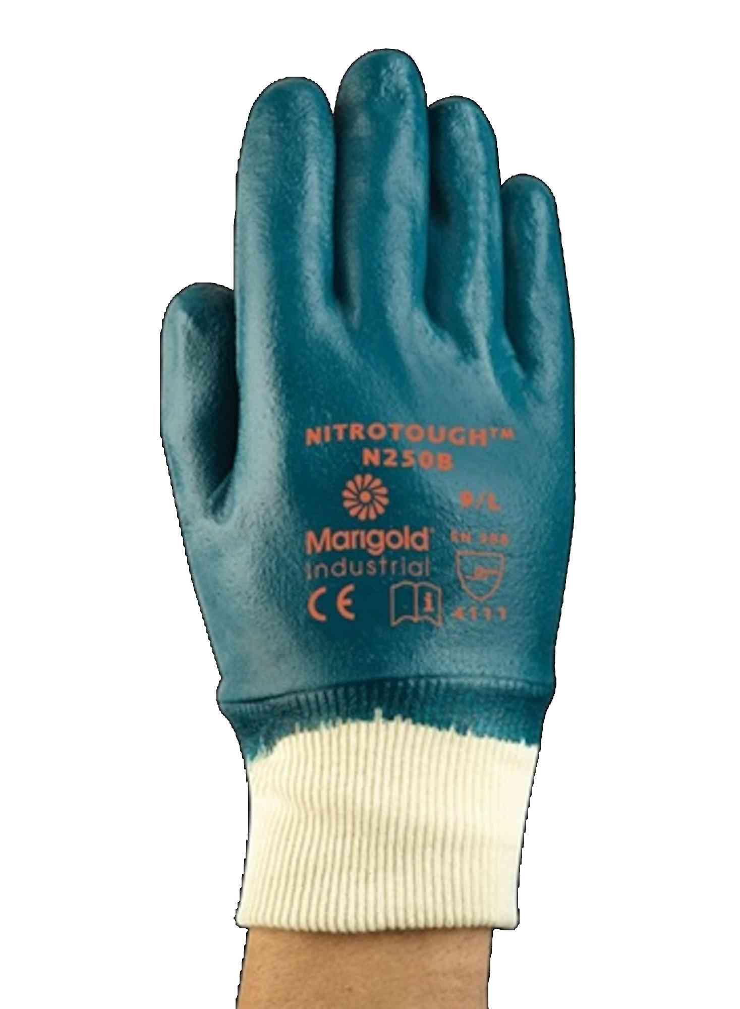 Marigold Industrial Nitrotough N250B Full Coated Gloves conform to: EN 420 Cat. II and EN 388:2003 4.1.1.1 Safety Standards.