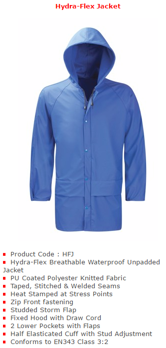 Orbit HJF Hydra-Flex Unpadded Navy WaterProof Jacket conforms to EN343 Class 3:2 safety standards.