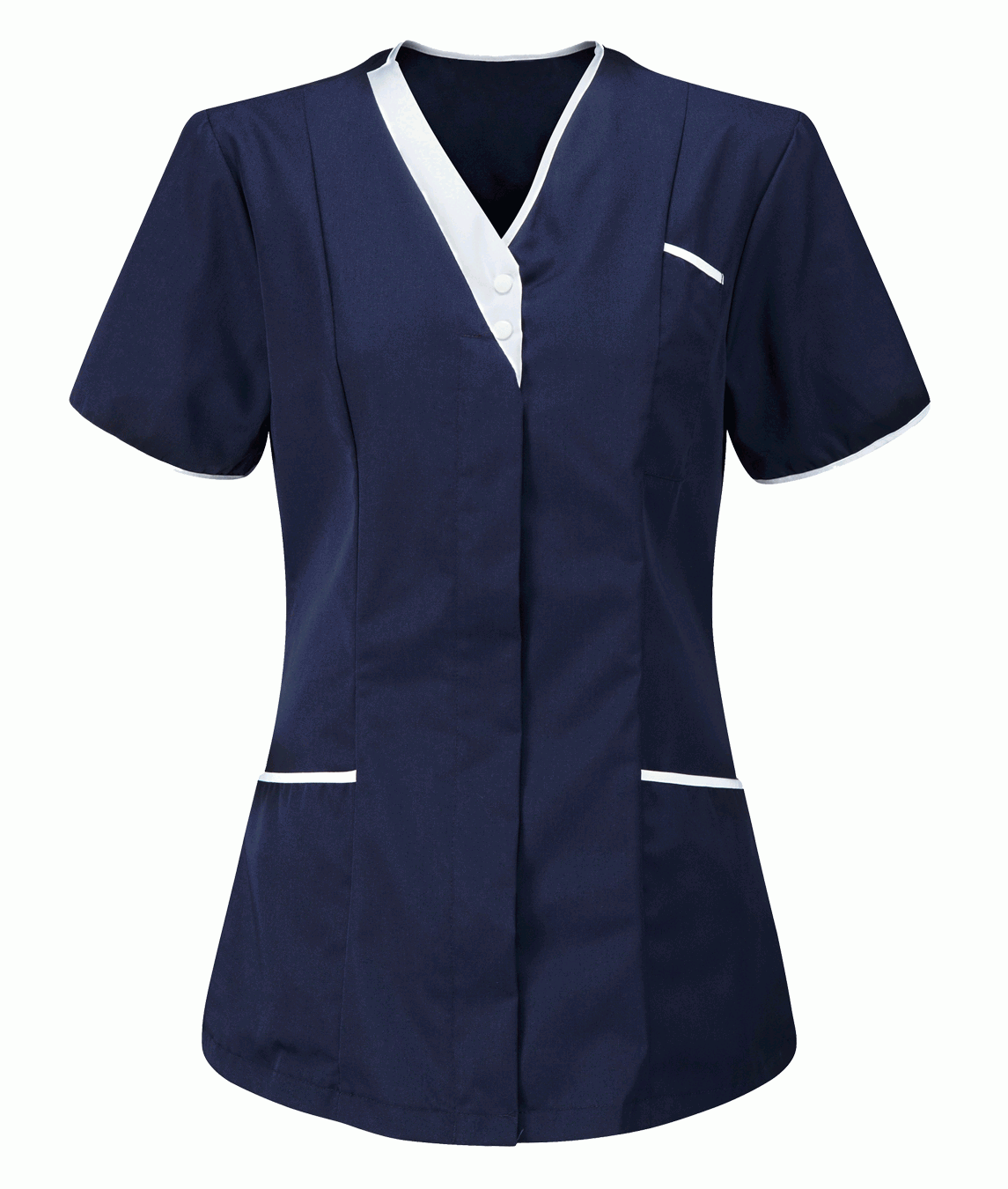 Work tunic featuring a contrast colour V-neck collar, suitable for medical and beauty parlours.