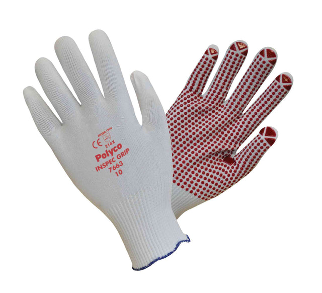 Polyco 766 Inspec Grip Nylon Seamless Inspection Gloves PVC Dots