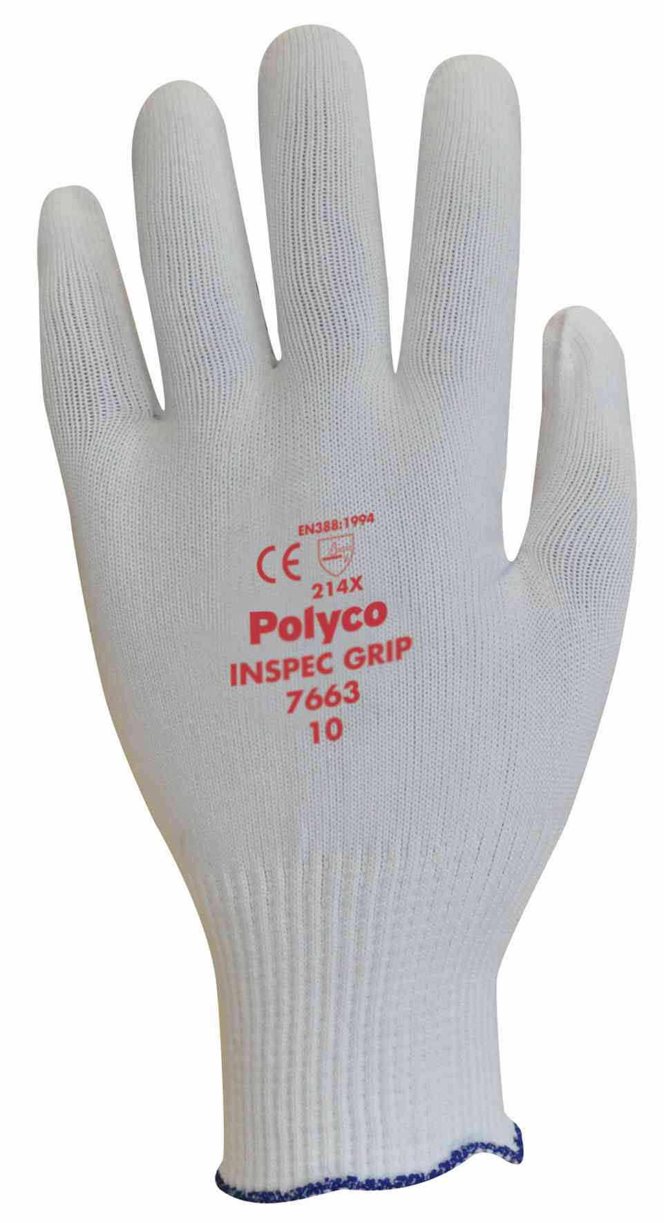 Polyco 766 Inspec Grip Nylon Seamless Inspection Gloves conform to: EN 388 3.1.4.2 hnds protection standards.