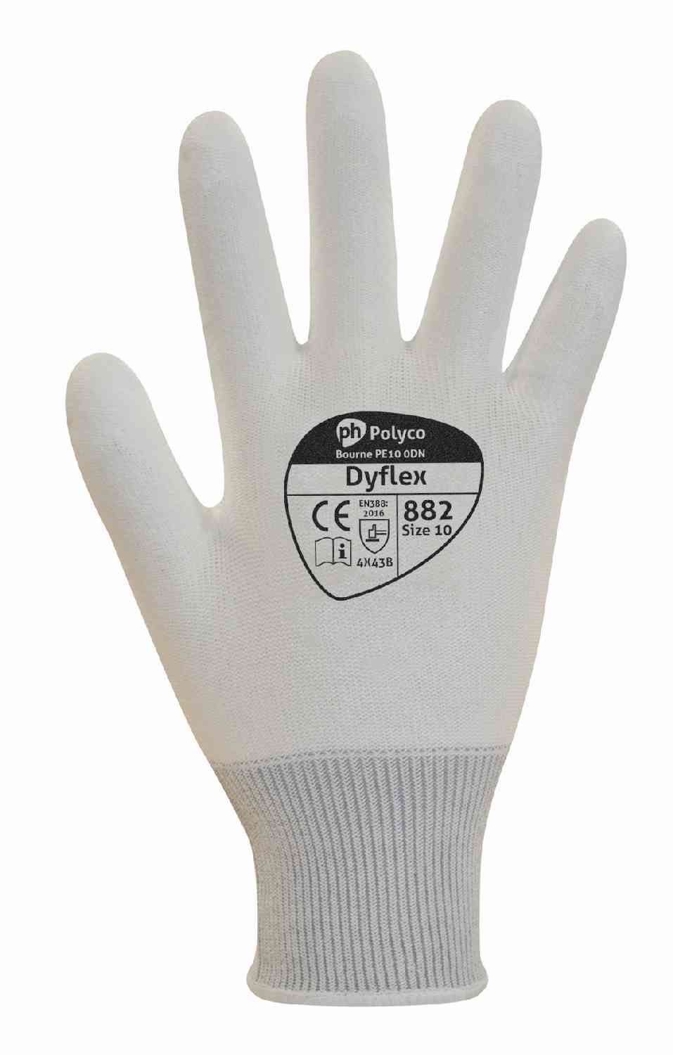 Polyco 882 Dyflex® Work Gloves Level B Cut Resistant PU Coating White