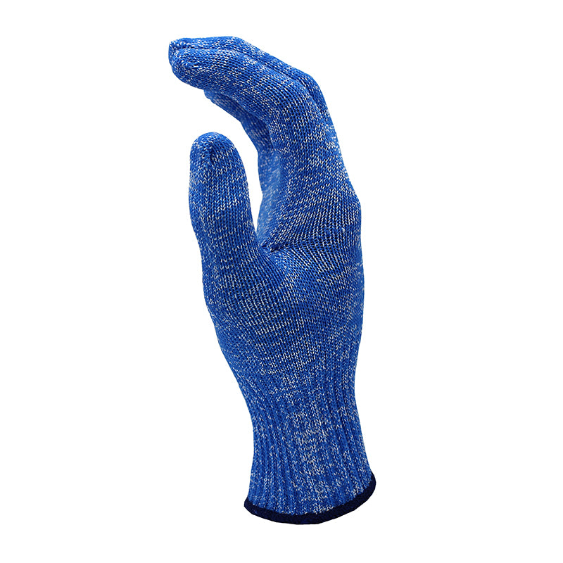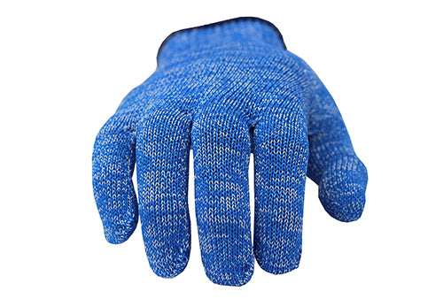 Seamless knitted high cut resistant glove with Dyneema technology is ideal in food processing whenever a knife is used.