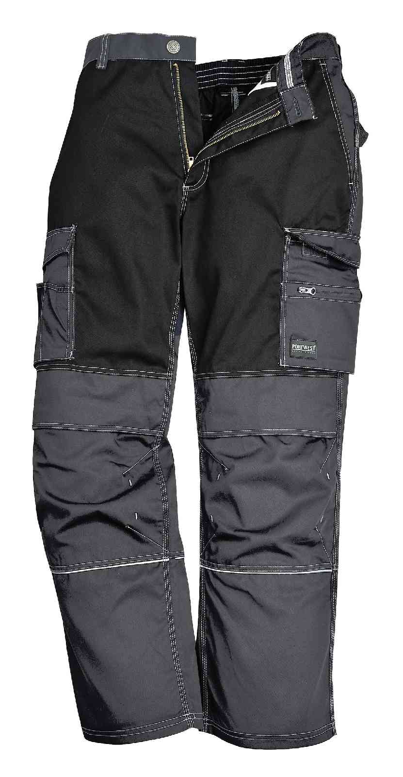 Portwest KS13 Granite Polycotton Cargo Trousers Knee Pad Pockets Grey/Black