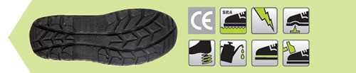 Anti static with a slip and oil resistant sole and an energy absorbing heel for comfort.