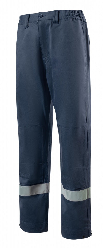 Flame retardant work trousers with Flame retardant retroreflective tape.