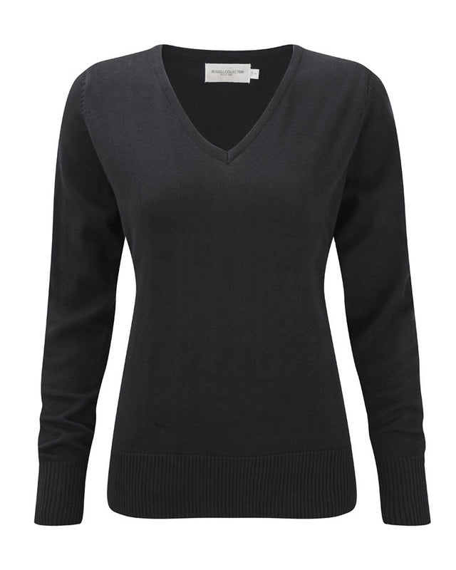 Russell Collection 710F Ladies V Neck Sweater Cotton & Acrylic Pullover Black
