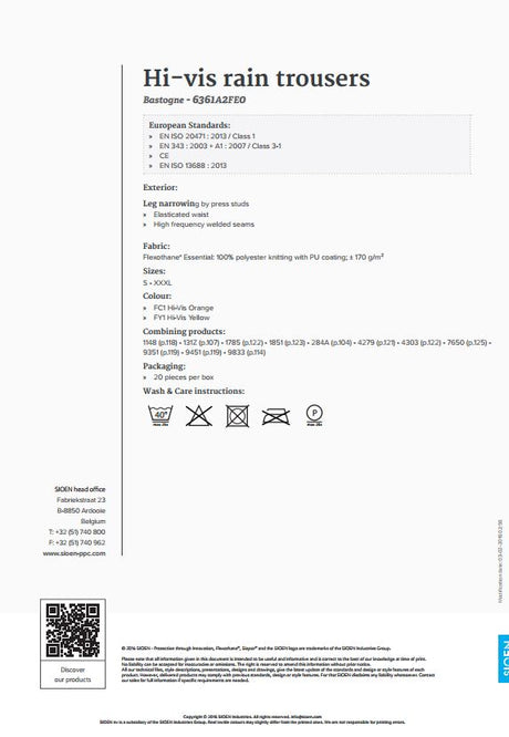 Sioen Bastogne Waterproof High Vis Yellow Rain Trousers 6361