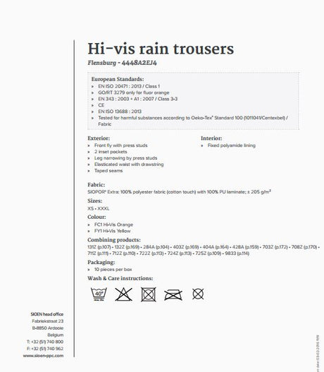 Sioen Flensburg 4448 Waterproof & Windproof, Breathable Hi Vis Yellow Trousers