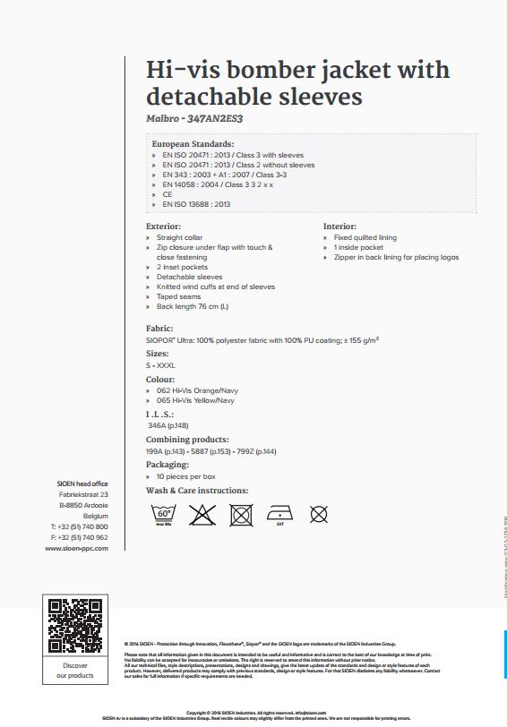 Complies to EN ISO 20471 : 2013 / Class 3 with sleeves.