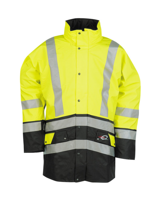 Sioen Bron 1851 Hi Vis Waterproof Work Hooded Anorak Jacket complies to EN ISO 20471 : 2013 and Class 3 EN 343 : 1998 / Class 3-1 safety standards.