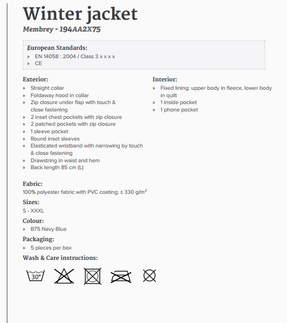 Sioen 194A Membrey Waterproof Hi Vis Work Rain Jacket conforms to EN343:2003+A1:2007/AC:2009 standards.