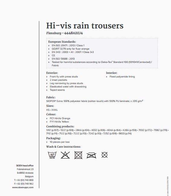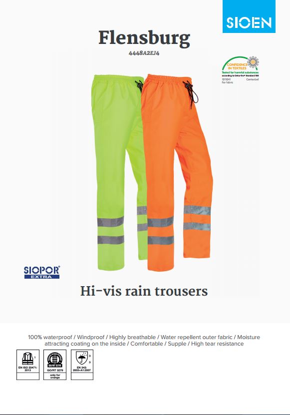 The Sioen Flensburg 4448 Hi Vis Trousers are 100% waterproof & windproof.