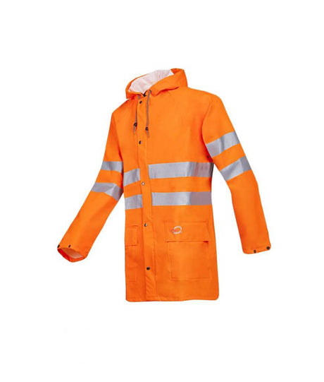 Sioen Unzen 3720 Waterproof Hi Vis Flexothane Unlined Orange Hooded Rain Jacket