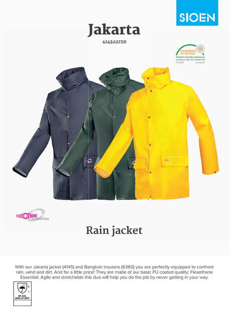 Sioen Jakarta 4145 Flexothane Rain Waterproof Stretchable & Windproof Jacket Navy/Yellow