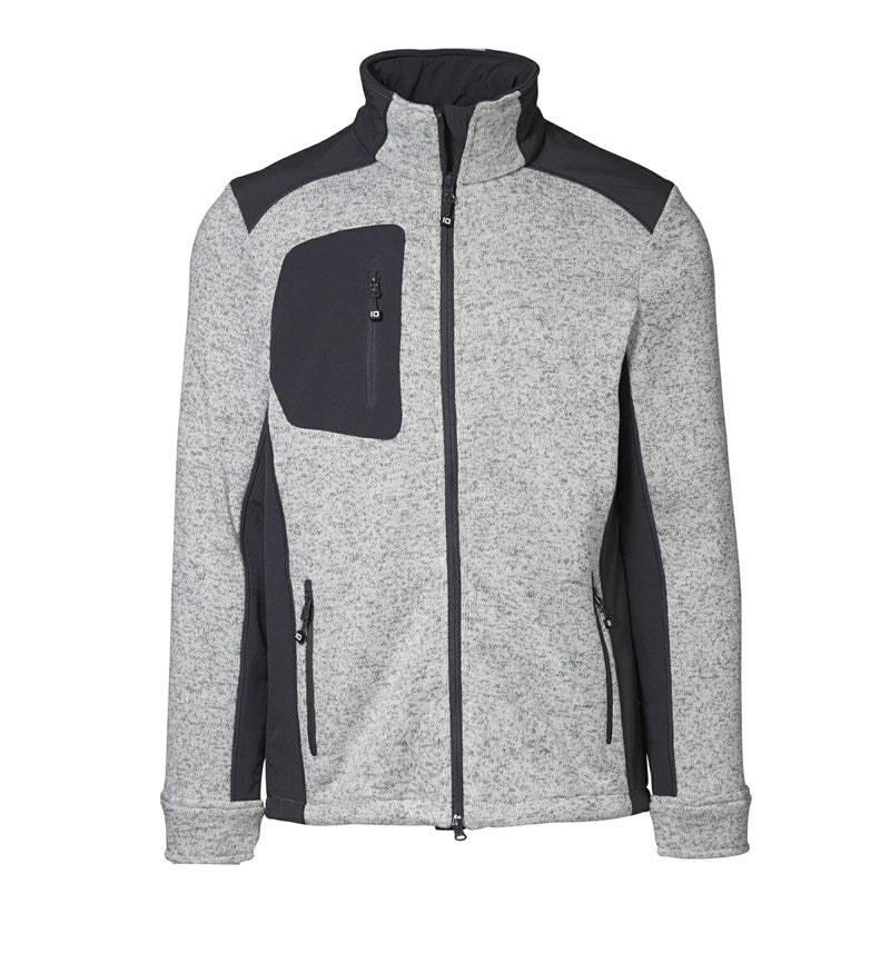 ID 0850 Mens Knit Fleece Work Cardigan Full Zip Melange Contrast Patches