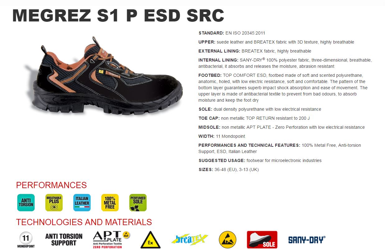 These conform to: EN ISO 20345 S1 P ESD SRC.