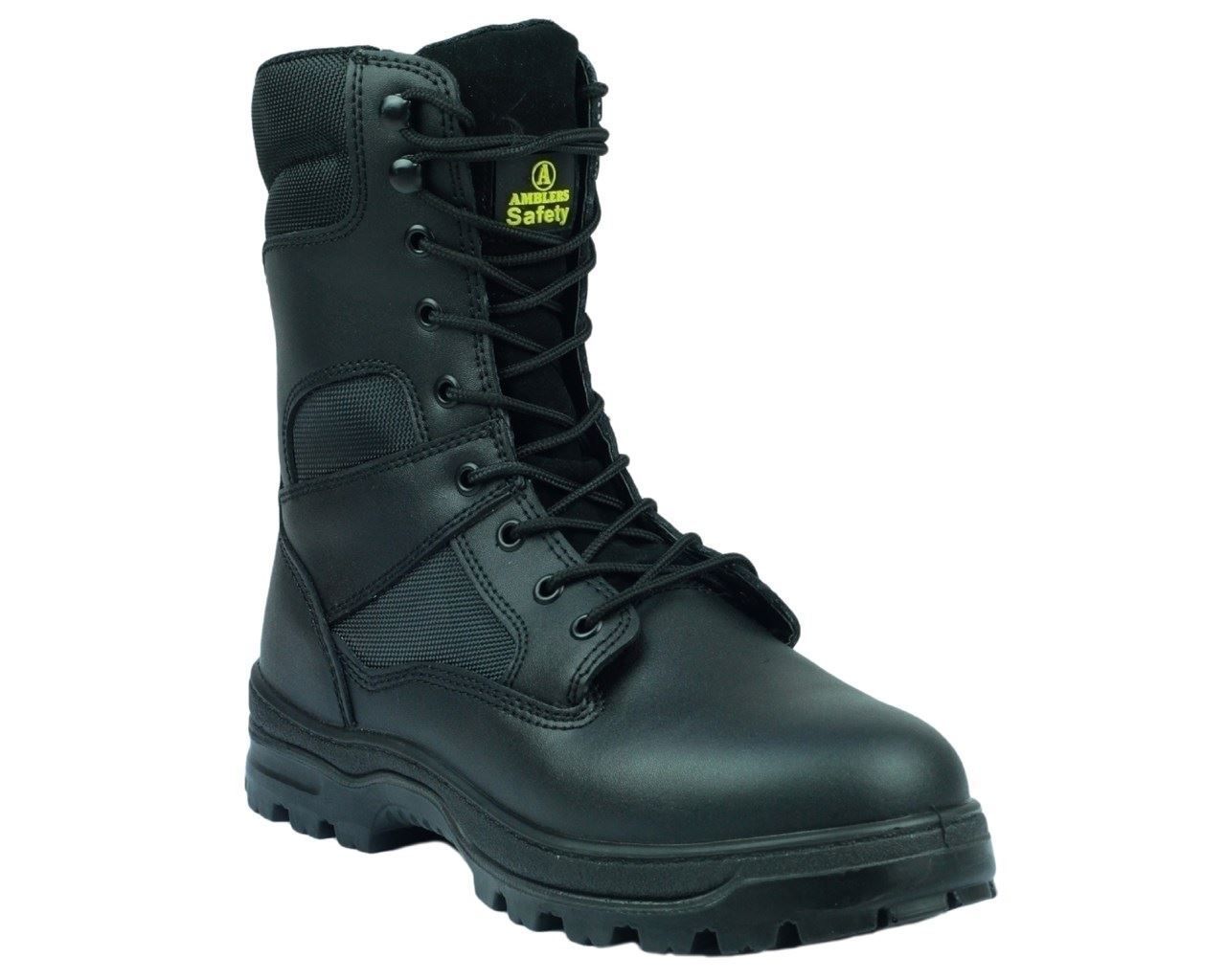 Amblers FS008 Combat-style Black, side zip safety boot.
