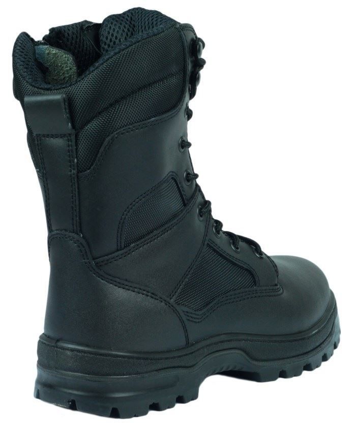 Thsi Commando- style safety boot is made with a water-resistant leather and fabric upper.