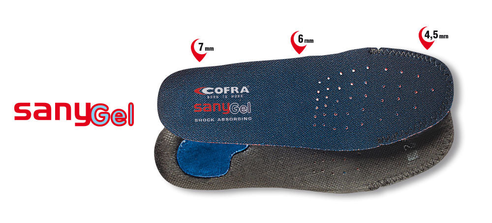 Cofra San-Gel Insole for Shoes and Boots Antistatic foot bed with special gel insert in the heel.