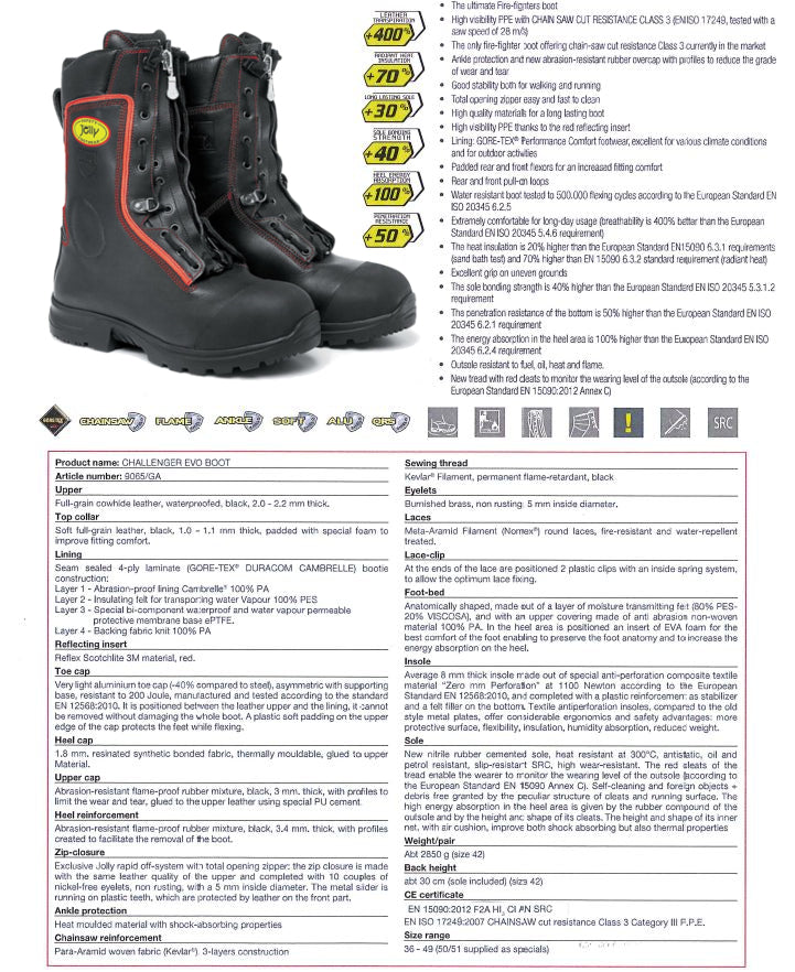 Jolly 9055/GA Firefighter & Chainsaw Waterproof Boots GORE-TEX