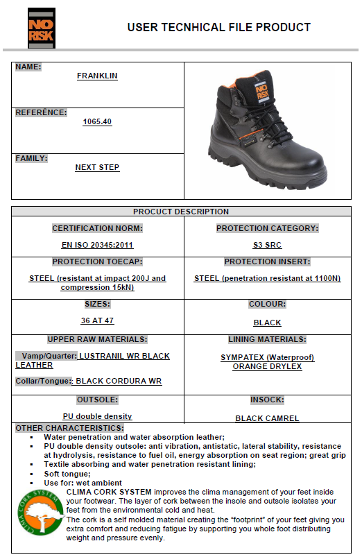 The No Risk Franklyn is a Black Waterproof, Breathable safety boot, with Sympatex lining.