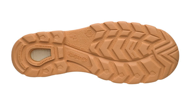 The Jalaska J0266 by Jallatte: it has a high density, cushioning, dual density PU outer sole. The sole is also abrasion resistant.