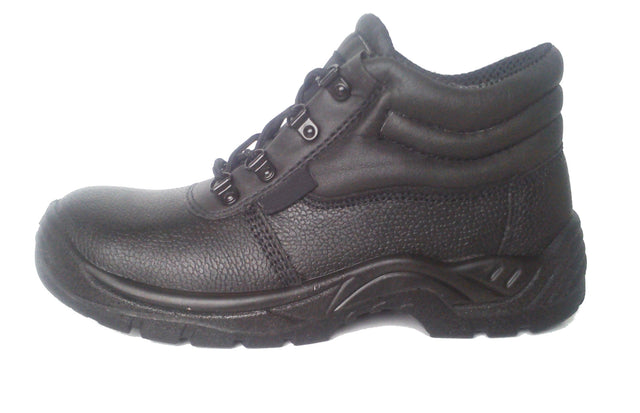 Black Chukka safety boot with steel toe cap and steel midsole.
