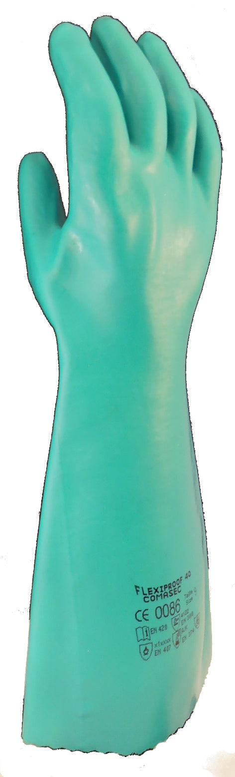 Comasec Flexiproof Nitrile Chemical Protection Gauntlets 40cm - Green / 10 is backordered and will ship as soon as it is back in stock.