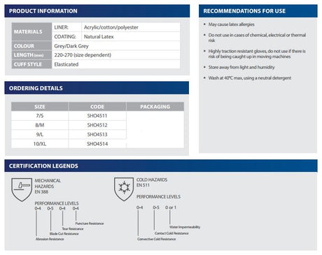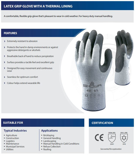 Showa Thermo Grip 451 Cold Conditions, Latex Coated Palm Glove, Excellent Grip 2.2.4.1