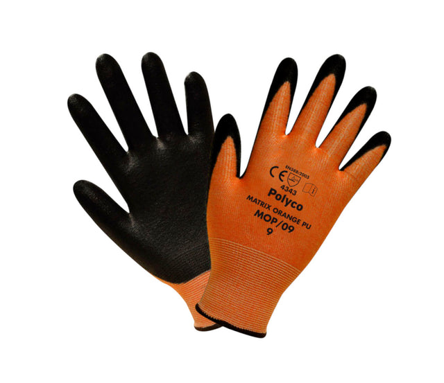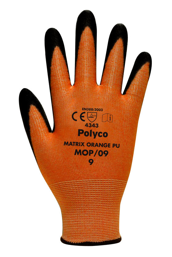 Polyco Matrix Orange Work Gloves Polyurethane Coating Cut 3 Resistant Oily Grip