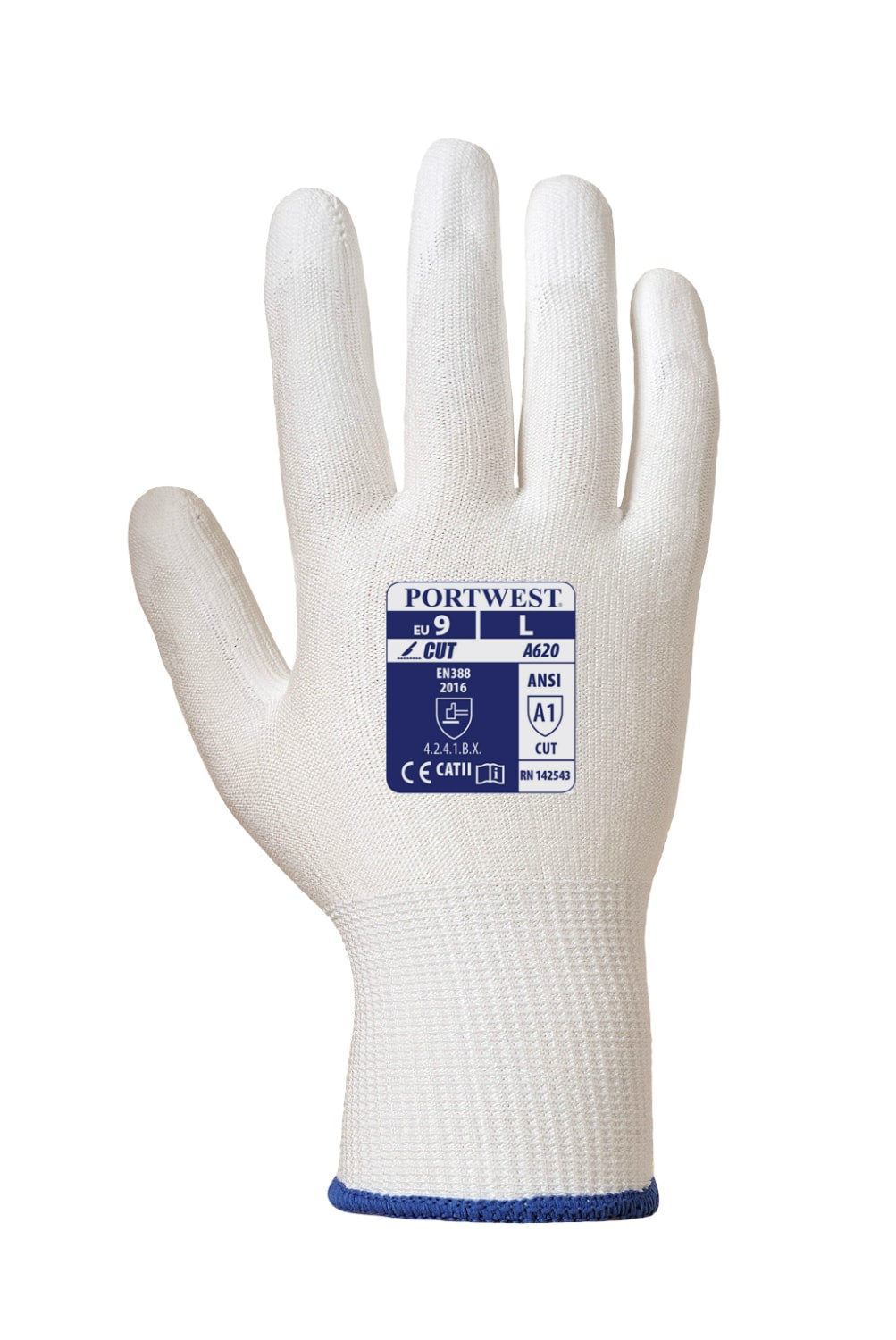 Portwest A620 Work Gloves Cut Resistant Level-3 PU Palm White