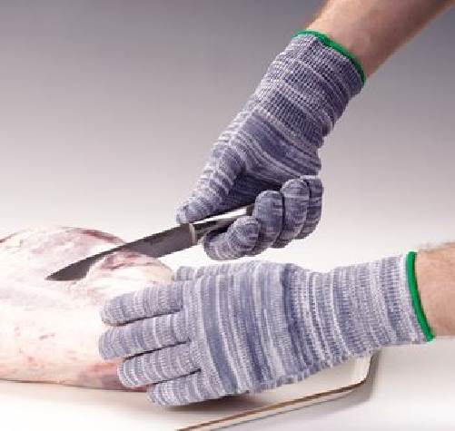 Gloves are made from a coruscate high cut resistant yarn with a flexible nitrile coating.