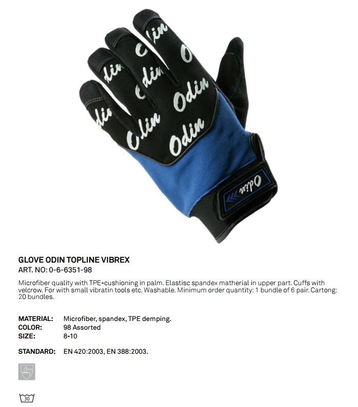 Wenaas Odin Topline Vibrex Anti-Vibration Glove 6-6351 conforms to: EN420 EN388:2003 2.1.2.1.