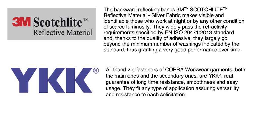 Conforms to: EN ISO 13688:2013 and EN ISO 20471:2013 - Class 3, standards.