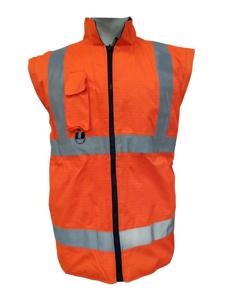 Leo Workwear Shirwell BSO3 Sleeved Waistcoat Reflective Bands Lightweight Orange