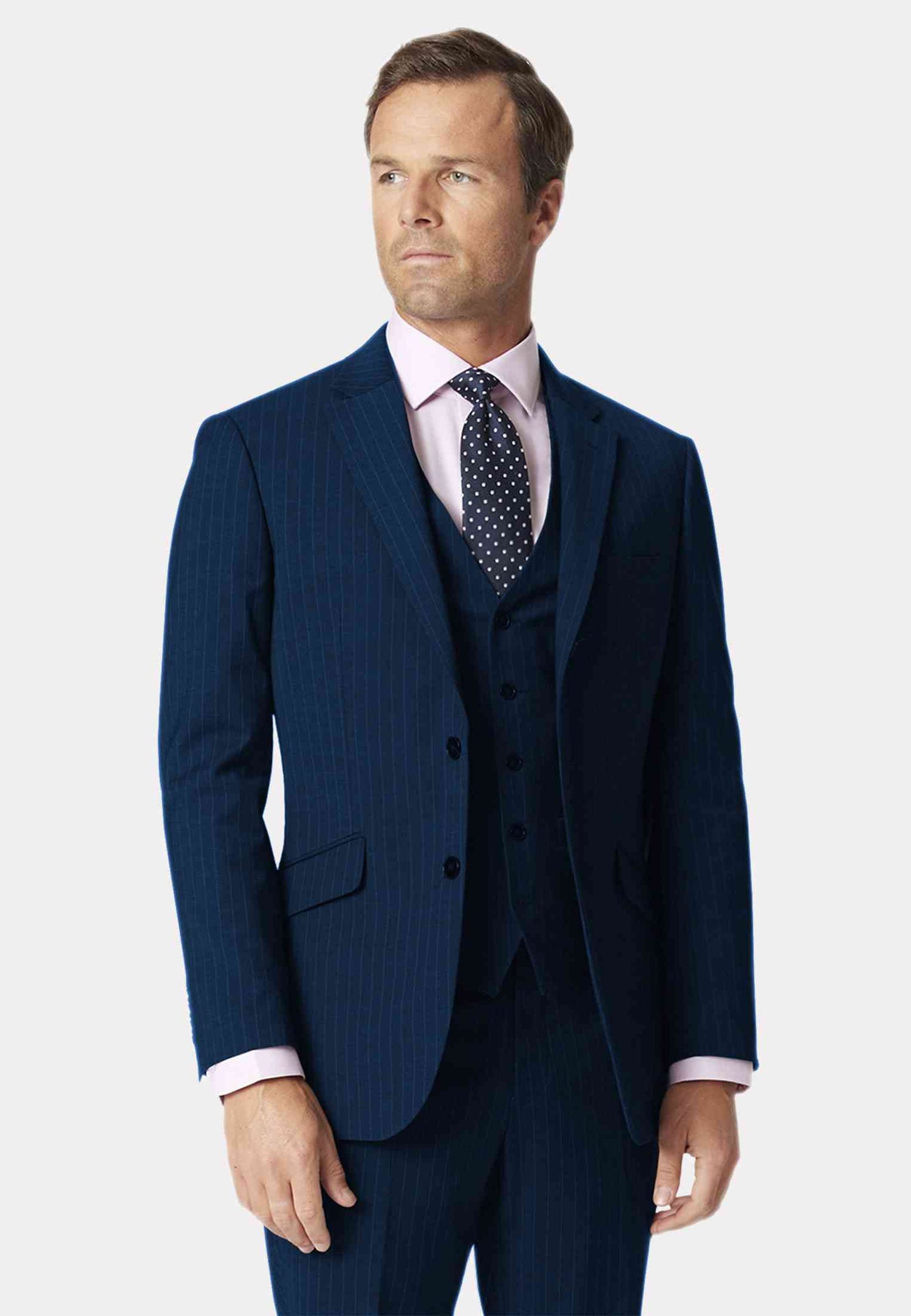 Brook Taverner Avalino Men Suit Jacket Navy Pinstripe 46 Regular