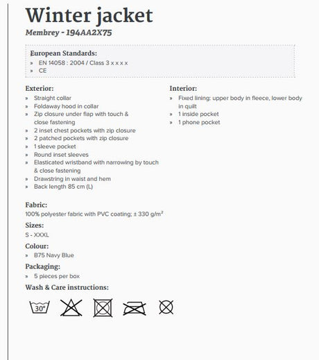 Sioen 194A Membrey Waterproof Reflective Hi Vis Hooded Navy Work Rain Winter Jacket