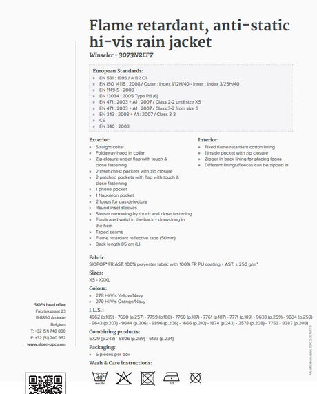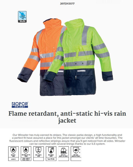 Sioen Winseler 3073 Waterproof Hi Vis Flame Retardant Multinorm FR Parka Jacket