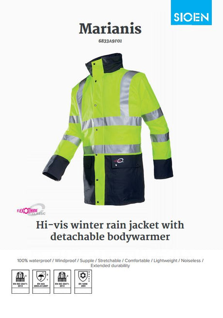 Sioen Marianis Hi-Vis Winter Rain Jacket with Detachable Bodywarmer Yellow/Navy 6833