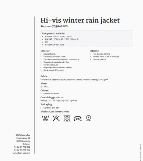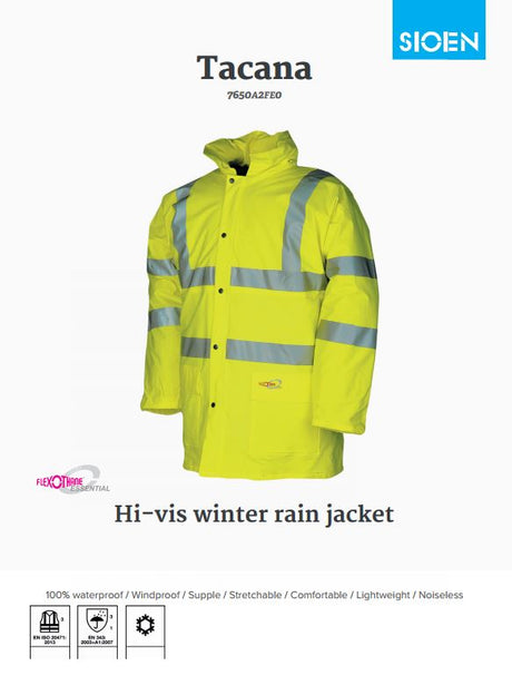 Sioen Tacana 7650 High Visibility Quilted Lined Rain Yellow Jacket