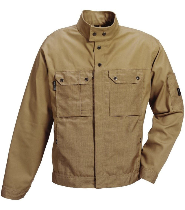 Mascot Gerona 03009-010 Khaki Jacket is a 310g/m2 polycotton work jacket, with reinforced Cordura patches.