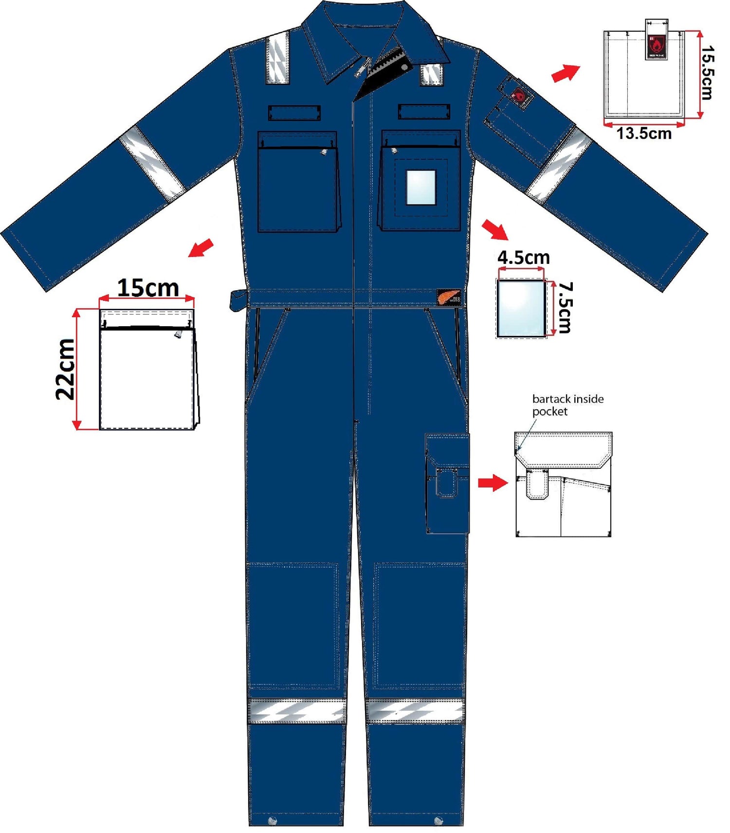 Gas detector and pen pocket on left sleeve.